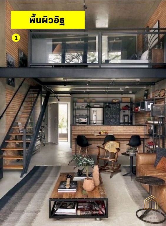 วัสดุที่นิยมใช้ในการตกแต่งแบบธีม Loft ส่วนใหญ่นั้น จะใช้วัสดุ 2 ประเภทยอดนิยม ได้แก่ “ อิฐ “ และ “ ปูน “
