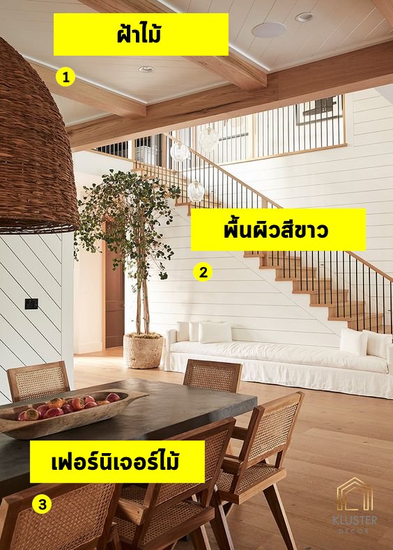 วันนี้ Kluster Decor จะพาไปดูเจาะลึกถึงรายละเอียดของสีต่างๆ ที่เข้ากันกับการแต่งบ้านโทนไม้ ซึ่งสีที่นิยมใช้มาแต่งคู่กันกับวัสดุประเภทไม้ได้แก่ “ สีขาว “ และ “ สีเทา “